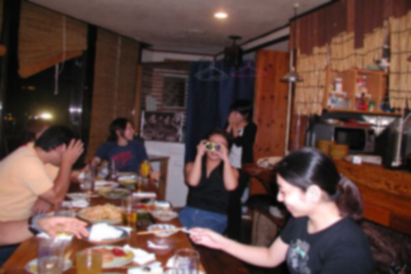 宴会の風景・・・このテーブルもイスもぶんさんの手作りなんだそうです、お店全体があったかい感じがするのはこういう所からきているのかもしれませんね。